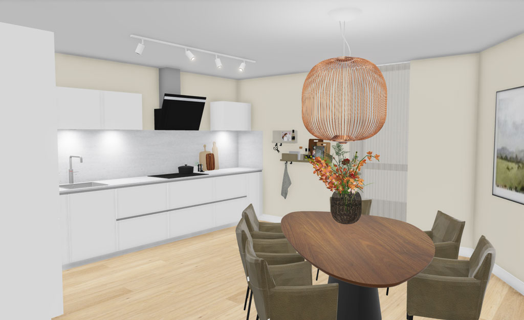 TwoWork heeft het advies mogen geven voor een groot deel van de inrichting van deze woning. Voor zowel de woon- als eetkamer is gekozen voor een warme, verfijnde basis, volledig afgestemd op comfort en rust. De ruimtes zijn ingericht met hoogwaardige meubelstukken en maatwerkoplossingen die zorgen voor een harmonieus en overzichtelijk geheel. De buitenruimte vormt een stijlvolle verlenging van het interieur en versterkt de totale woonbeleving.